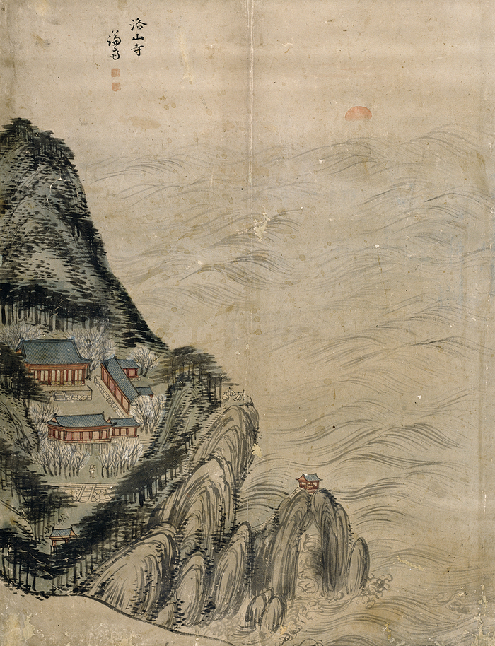 정선 ‘금강산8폭’ 중 ‘낙산사’ ⓒ 간송미술문화재단 간송이 안종원으로부터 인수한 겸재 정선의 ‘금강산8폭’은 진경산수화의 정수를 보여준다. 실제 산천의 풍경을 답사하고 경치의 진면목을 뽑아서 재구성한 조선 산수의 아름다움을 극대화한 작품이다.
