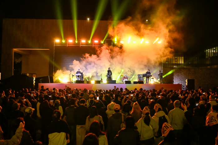 지난 10월 29일 서울 종로구 국립현대미술관 서울관 마당에서 열린 콘서트에서 관람객들이 글렌체크 공연을 보고 있다. <국립현대미술관> 조용하게 작품을 감상하는 미술관이 록페스티벌 현장으로 바뀌었다. 하이볼을 즐기며 몸을 들썩이는 관람객부터 깃발을 흔들며 무대 앞에서 춤추는 이들까지. 미술관과 박물관을 찾는 2030이 많아지면서 전통적인 관람의 공간이 젊은 세대의 놀이 공간으로 변신하고 있다.