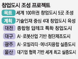 24일 정부는 구윤철 경제부총리 겸 재정경제부 장관 주재로 열린 국가창업시대 전략회의에서 이 같은 내용의 '창업도시 조성 프로젝트'를 발표했다. 현재 서울에 집중된 창업 인프라스트럭처를 지방으로 확장해 '서울에 안 가도 창업·성공이 가능한' 환경을 만들겠다는 계획이다. 중소벤처기업부는 먼저 4대 과기원이 있는 대전·대구·광주·울산을 창업도시로 우선 선정해 선도 모델을 만든다. KAIST와 국내 최대 규모 출연연구소가 밀집한 대전시는 종합형 딥테크 특화 창업도시로,대구경북과학기술원이 있는 대구는 로봇·도심항공교통(UAM)·반도체 특화 제조도시로 육성한다.